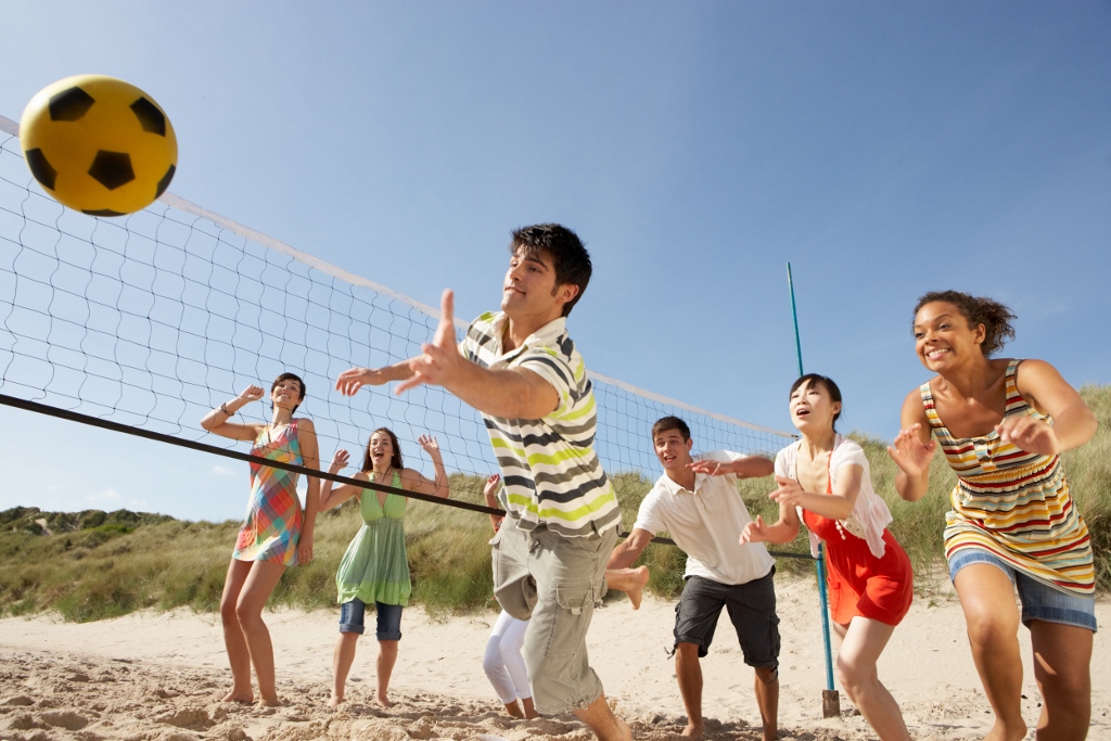 Play beach volleyball